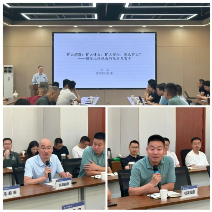 5月21日上午,yl7703永利集团名家讲坛暨yl7703永利集团优秀校友讲座在宏观经济大楼124会议室举行。我院政治经济学专业1984级本科、1994级博士,中国人民大学宋立教授应邀作《扩大消费:扩大什么,扩大多少,怎么扩大—国际比较视角的观察与思考》的主题报告。yl7703永利集团原校长郭立宏,学院党委书记张宇,院长助理、校友与国内合作办主任杨晓,校友联络人石高宏,学院师生和校友代表共70人参加。讲座由学院院长马莉莉主持。