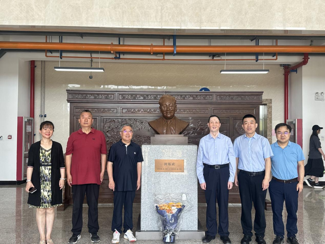 讲座前,宋立向何炼成先生塑像鞠躬致敬并献花。