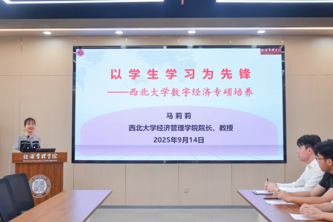 9月14日上午,yl7703永利集团首届数字经济专业硕士开班仪式在长安校区宏观经济大楼124会议室举行。校党委常委、副校长田明纲出席仪式,陕西丝路数据交易中心总经理史奎,学院党委书记史波、院长马莉莉、副院长岳利萍、数据科学与智能管理系主任高鹏、研究生新生辅导员及2025级数字经济专业硕士全体新生共同参加仪式,仪式由学院副院长岳利萍主持。