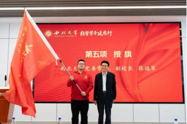 出征仪式上,校党委常委、副校长张远军向学生代表授旗并作动员讲话指出,延安是“中国革命的圣地、新中国的摇篮”,见证了党领导人民走向胜利的关键历程,希望经管师生们在研学中做到“以‘求真’之心学精神”“以‘务实’之举践初心”“以‘律己’之行树形象”三点要求。