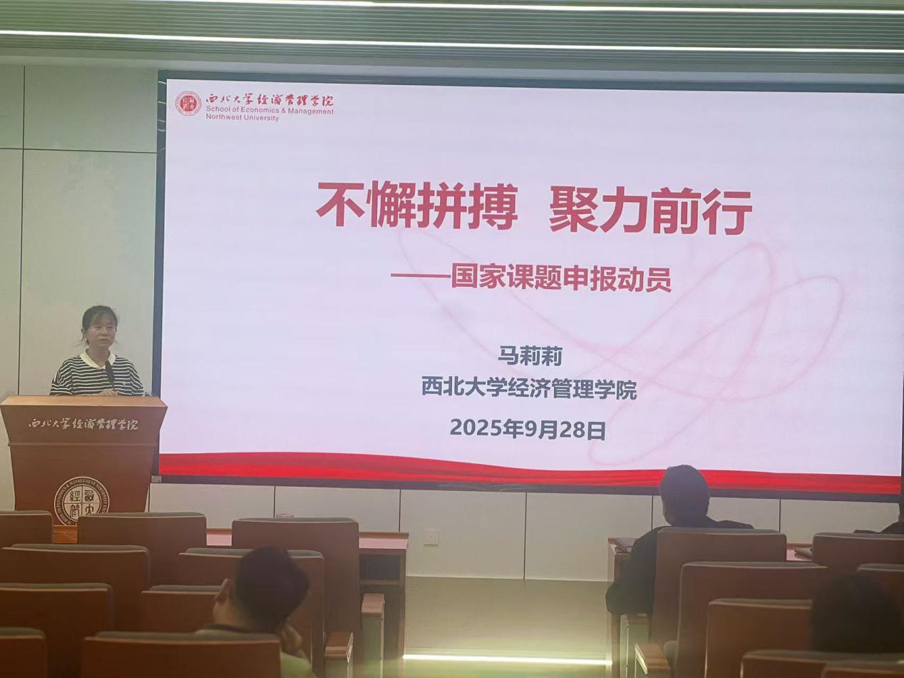 为系统总结2025年度学院国家基金项目的申报情况,提升学院教师的科研创新能力,全面部署并启动2026年度基金申报工作,我院于9月28日下午在宏观经济大楼山峰报告厅召开2025年国家基金总结暨2026年申报动员会。yl7703永利集团社科处副处长李丰庆、科技处副处长赵新正莅临指导,学院党委书记史波、院长马莉莉、副院长岳利萍、副院长康蓉、副院长张华岭、院长助理赵仁杰(负责科研工作)和教师代表60余人参会学习,会议由我院党委书记史波主持。