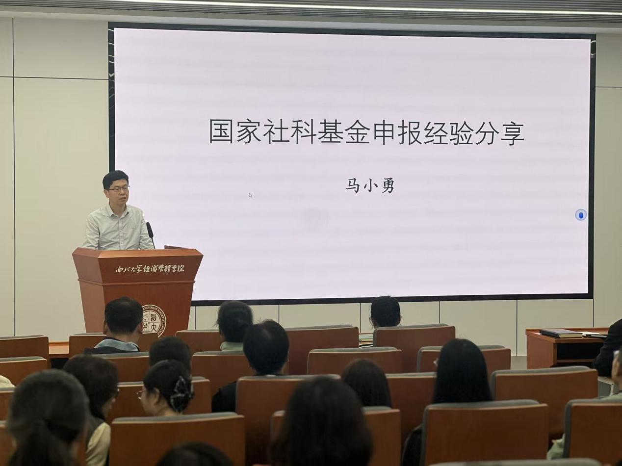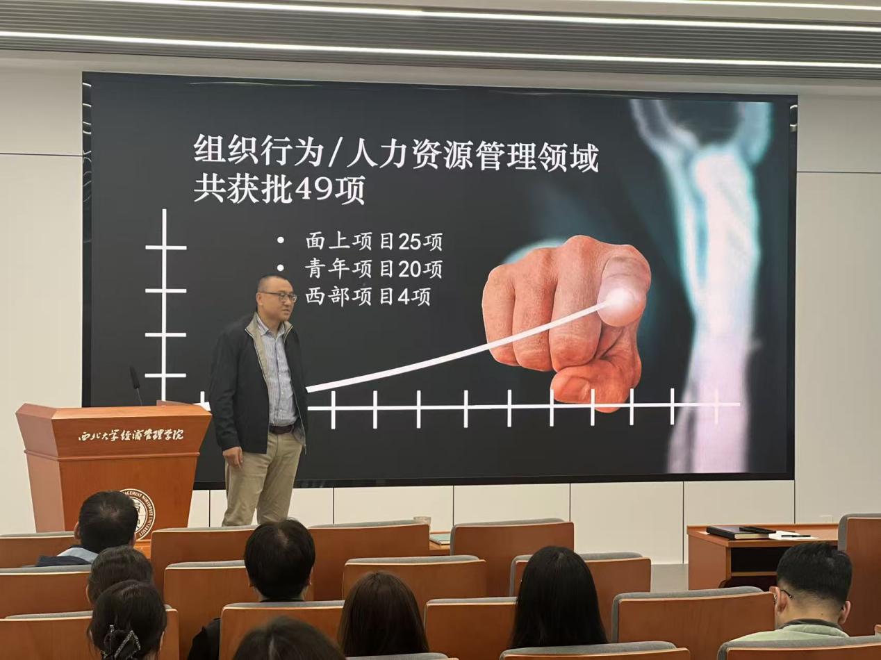 接下来,学院邀请了本年度获得国家基金项目的杨春江教授、马小勇副教授、武宵旭和薛姗老师分享成功经验。四位教师从选题立意、文献梳理、研究内容设计、创新点凝练、申请书撰写技巧乃至心态调整等方面,毫无保留地分享了他们的心得与体会。