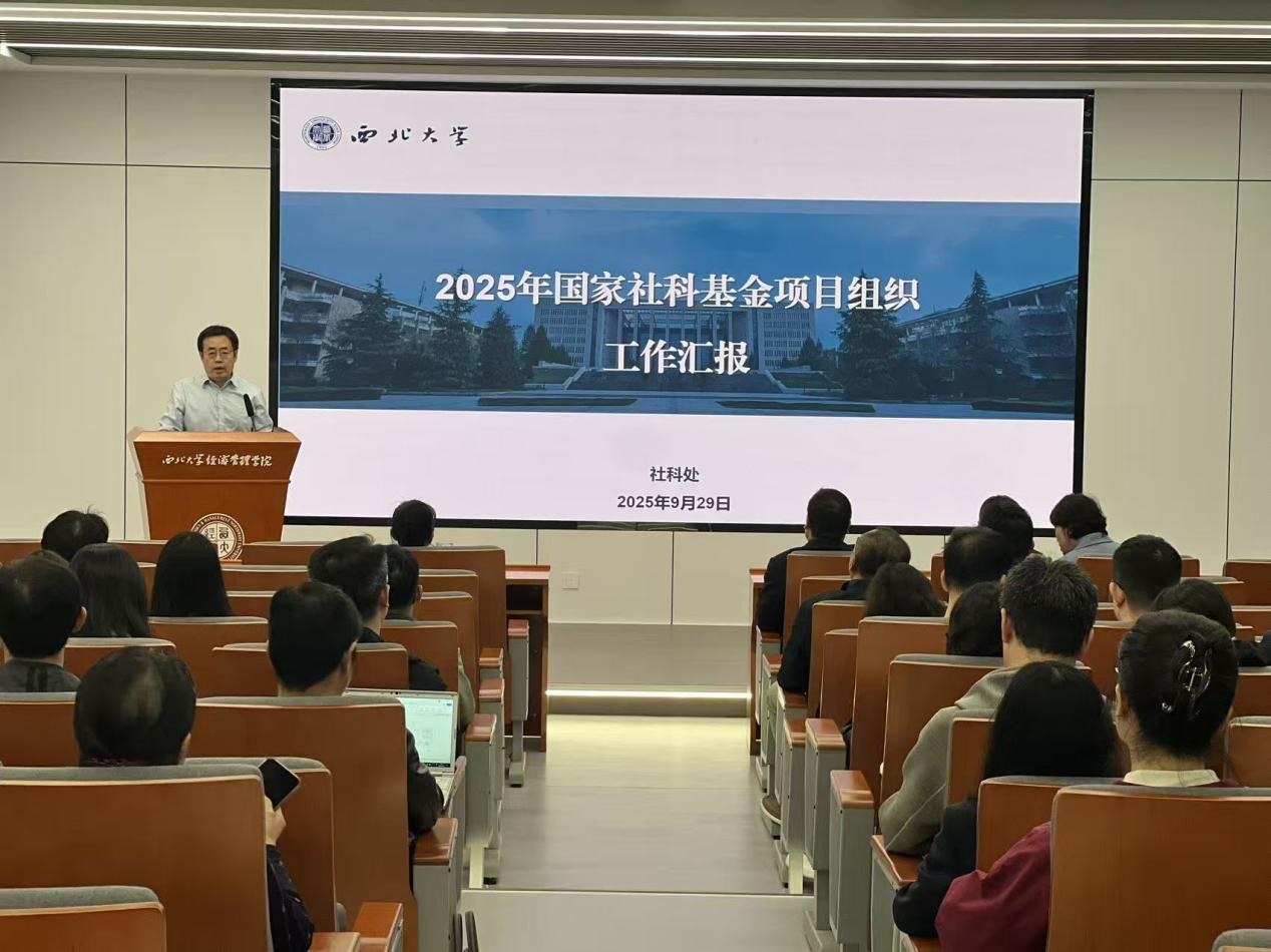 首先,学校社科处副处长李丰庆就国家社科基金项目学校层面的项目组织情况做主题报告,详细介绍了2025年度全省科研项目组织情况,全校科研项目申报、评审与立项总体情况,分析了国社科基金申报特点以及申报的注意事项与若干问题,并表示学校全力支持和保障学院国家社科基金申报。