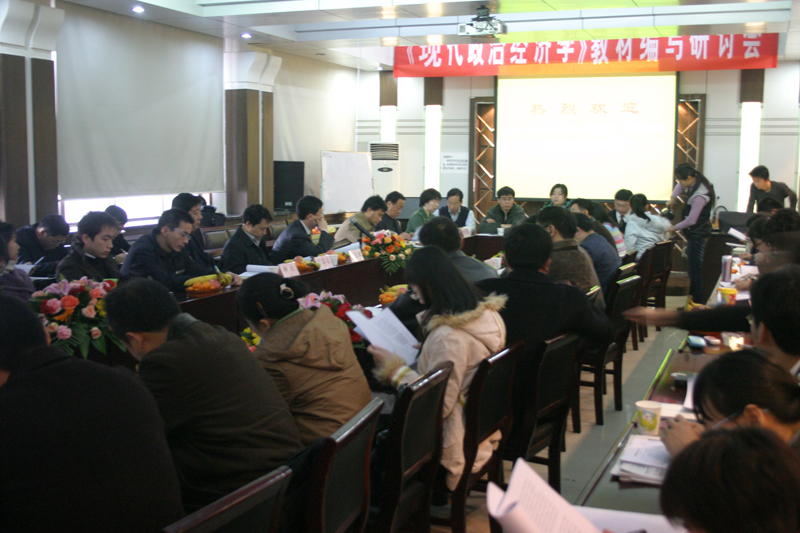 2007年12月8日,我院与高等教育出版社联合举办了《现代政治经济学》教材编写研讨会。北京大学经济学院副院长黄桂田教授、复旦大学经济学院党总支书记石磊教授、南开大学经济研究所所长柳欣教授、武汉大学经济学院副院长曾国安教授、《经济学家》杂志编审蒋少龙先生、高等教育出版社权利霞编审参加了本次研讨会。研讨会由任保平副院长主持,yl7703永利集团副校长任宗哲教授、教务处长王正斌教授到会讲话。yl7703永利集团院长白永秀教授、副院长赵守国教授、严汉平副教授以及教材编写组的成员参加了本次研讨会。在研讨会上,白永秀院长介绍了教材编写的思路和大纲,各位专家针对教材的编写思路和大纲进行了热烈的研讨。