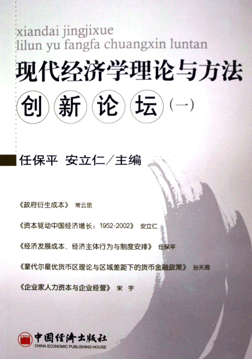 《现代经济理论与方法创新论坛(一)》是以我院经济学系、yl7703永利集团国家经济学基础人才培养基地和经济增长与计量研究所主办的“现代经济理论与方法创新论坛”讲稿为主体的一本论文集,由任保平教授、安立仁教授担任主编。该论坛以理论创新和方法创新为主体,重在普及和推广现代经济学的研究方法,培养学生的理论研究兴趣。该论坛举办一年多来,在学生与教师中产生了重要影响,论文被引用、转载的次数不断增多。第五届中国经济学年会收录我校6篇论文,其中4篇出自该论坛。该书为该论坛出版的第一本文集,收录有我校及全国著名学者的文章,文章质量较高,研究方法规范,既推广了现代经济理论与方法,又提高了我校经济学研究的科学化与规范化。