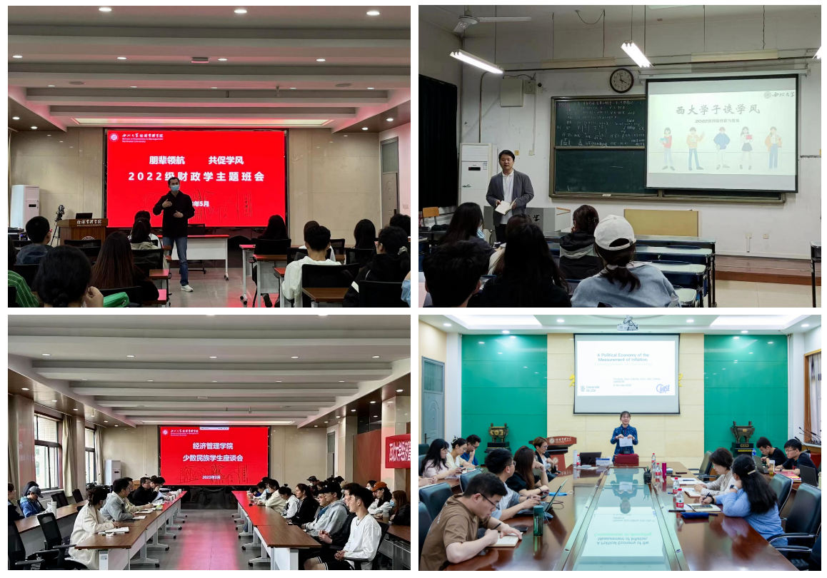 以建设高质量、奋进型优良学风为目标,发挥榜样引领示范作用,加强对学业困难群体帮扶力度,开展学风大调研、大讨论、大提升活动。举办研究生论文工作坊9场,参与人数800余人次;集中开展“西大学子谈学风”主题班会30余场,覆盖学院非毕业年级本科生;实施“学生就业能力提升+工程”专题培训、讲座7场,参与人数1000余人;召开少数民族学生、港澳台学生座谈会4次。