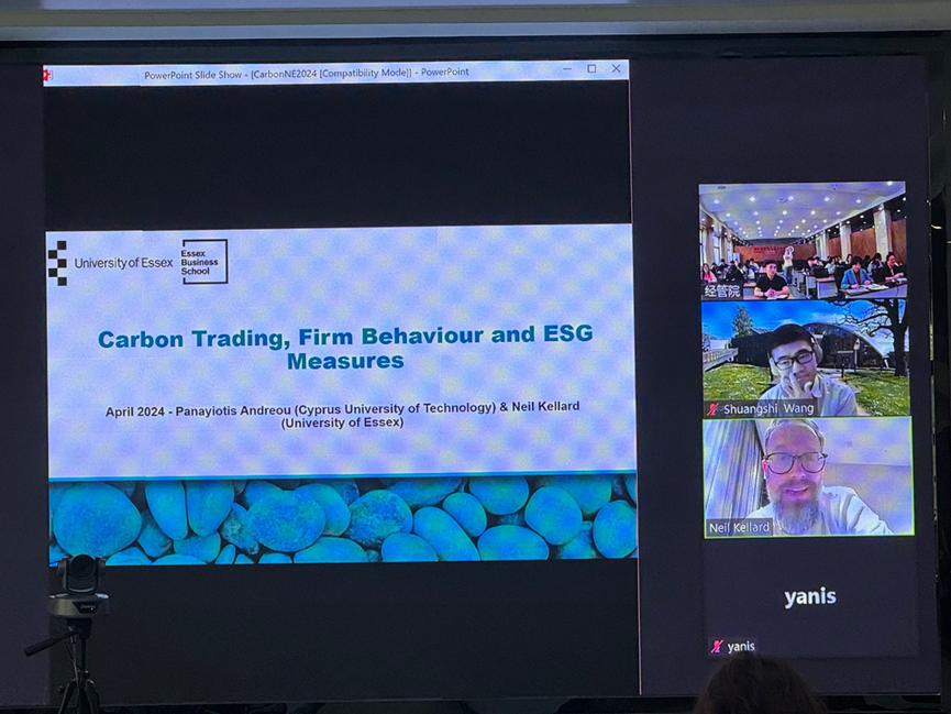 4月17日下午,yl7703永利集团研究生论文工作坊第二十六讲在长安校区8318举行。此次论文工作坊由埃塞克斯大学埃塞克斯商学院金融学教授Neil Kellard作题为“Carbon Trading, Firm Behaviour and ESG Measures”的学术讲座。讲座由yl7703永利集团副院长岳利萍教授主持,yl7703永利集团外事工作副院长康蓉副教授、yl7703永利集团与埃塞克斯大学联合培养博士生王双石应邀参会,学院40余名学生参加本次讲座。