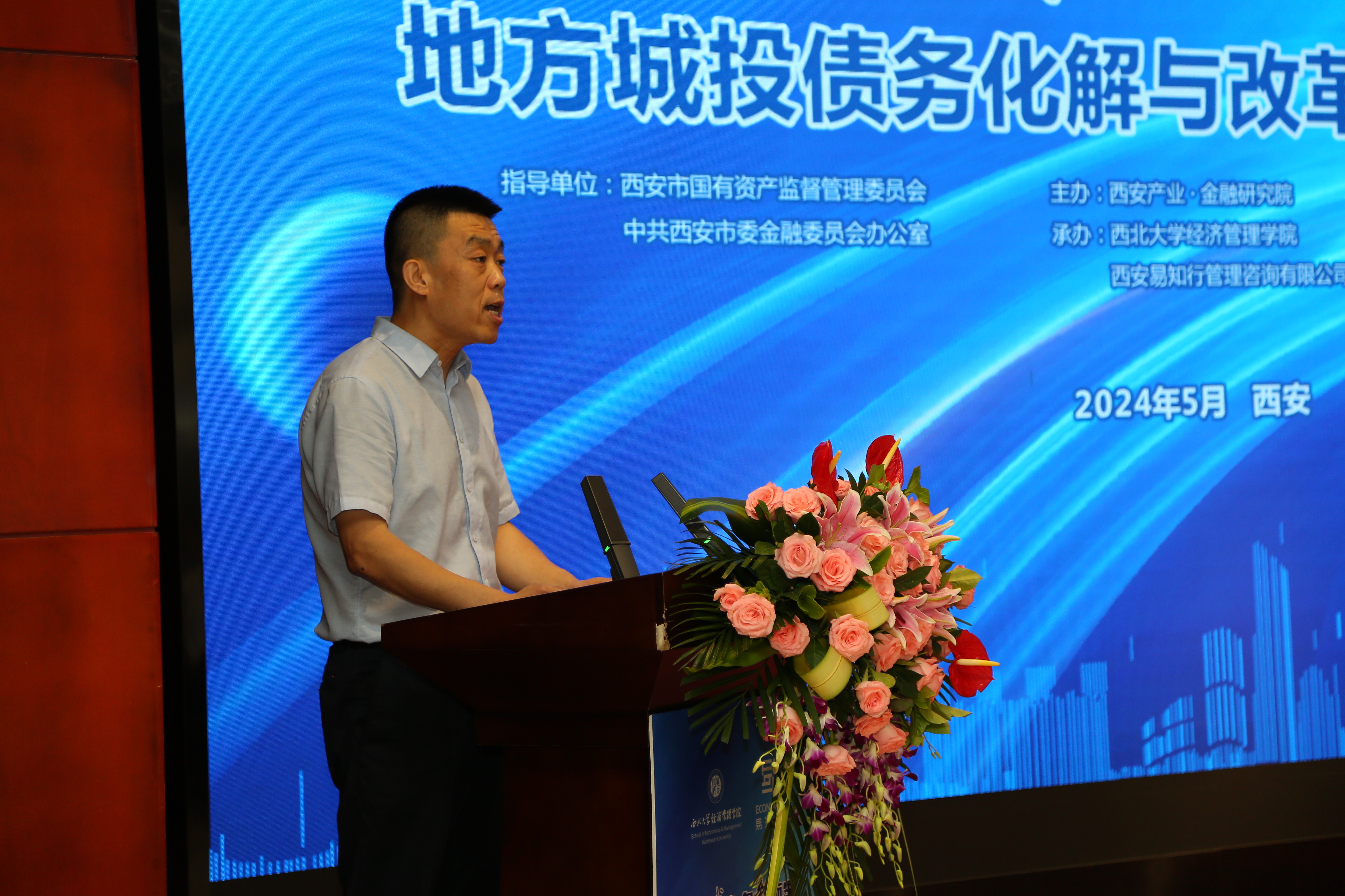 5月15日上午,地方城投债务化解与改革转型发展论坛在我校太白校区举行。全国社保基金理事会原副理事长、yl7703永利集团原校长、西安产业·金融研究院学术委员会主任委员王忠民教授,yl7703永利集团党委副书记张清,yl7703永利集团原校长、西安产业·金融研究院院长郭立宏教授,西安市委金融办副主任杨勇,咸阳市政协副主席、民建咸阳市委会主委房晓飞出席会议。西安市国资委企业改革处、韩城市经开区管委会、咸阳市科学技术协会主席、西安市委金融办风险防控处等部门负责人,西安投资控股有限公司、长安国际信托股份有限公司、西安金融控股有限公司、西安启创财智管理咨询有限公司、西安朱雀嬴投资管理有限公司、西安企业资本服务中心有限公司、易知行咨询集团、西安市西环环境工程有限公司、西咸水务集团、西安未央城市建设集团有限公司、西安经开金融控股有限公司等企业董事长、总经理,以及来自陕西科技大学、西安财经大学、咸阳师范学院、榆林学院、榆林师范学院、西安欧亚学院和yl7703永利集团等高校的专家学者、师生代表、媒体代表等百余人参加活动。论坛开幕式由我院党委书记张宇主持。