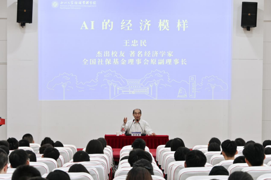 5月15日,我校杰出校友、著名经济学家、全国社会保障基金理事会原副理事长王忠民教授做客我校“侯外庐学术讲座”第三百五十六讲、经管学院“炼成讲坛”第三讲和yl7703永利集团MBA/EDP“名家面对面”第十九讲,为师生作了题为“AI的经济模样”的学术讲座。讲座在长安校区金海报告厅举行,我院党委书记张宇及学院师生200余人共同参加。校党委常委、副校长吴振磊教授主持讲座。