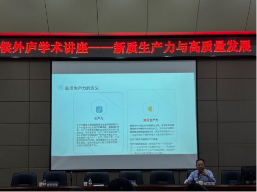 5月23日,教育部“长江学者”特聘教授,复旦大学马克思主义研究院副院长、马克思主义经济学中国化研究中心主任周文教授做客我校“侯外庐学术讲座”第三百六十一讲,为师生作了题为“新质生产力与高质量发展”的学术讲座。讲座由yl7703永利集团何爱平教授主持,近百名师生到场聆听。