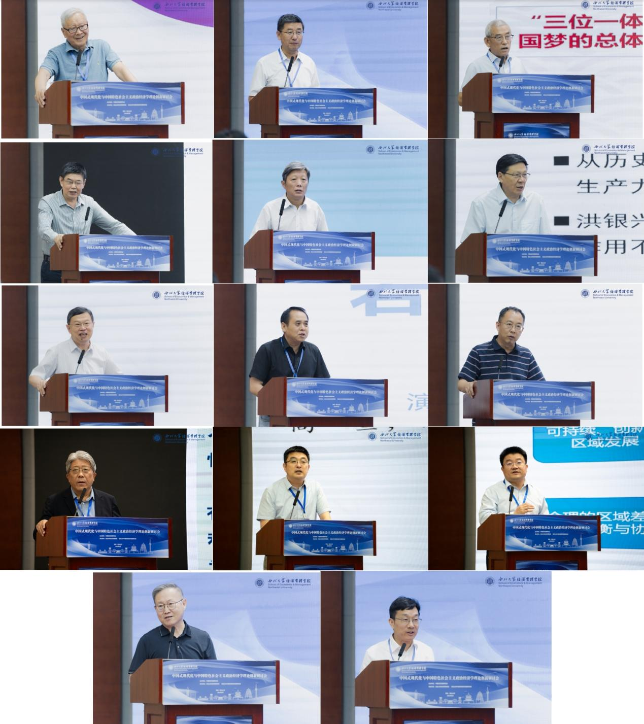 在下半场主旨演讲中,南京大学范从来教授以“关于新质生产力新质态的初步思考”为题、山东大学臧旭恒教授以“共同富裕与中国家庭经济风险的防范和化解”为题、中国社会科学院侯为民教授以“新质生产力生成路径的若干理解”为题、复旦大学周文教授以“新质生产力的理论意义”为题、辽宁大学谢地教授以“我国新型工业化赋能逻辑”为题、北京大学张辉教授以“发展新质生产力的条件、方向和原则”为题、yl7703永利集团吴振磊教授以“数字化驱动区域高质量发展的逻辑”为题,发表了精彩演讲。该阶段主旨演讲由浙江财经大学卢新波教授主持。