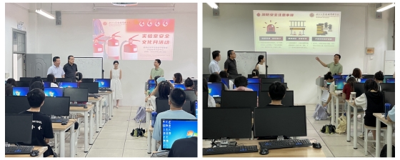 首先,实验中心许涛老师讲述了学院实验室安全的重点是消防安全,对常见火灾发生原因、逃生基本常识、消防火灾的应急处理、消防器材分类与使用等方面进行了详细讲解,并通过互动交流,有效提高了学生消防安全意识与应急处理能力,做到防患于未然。