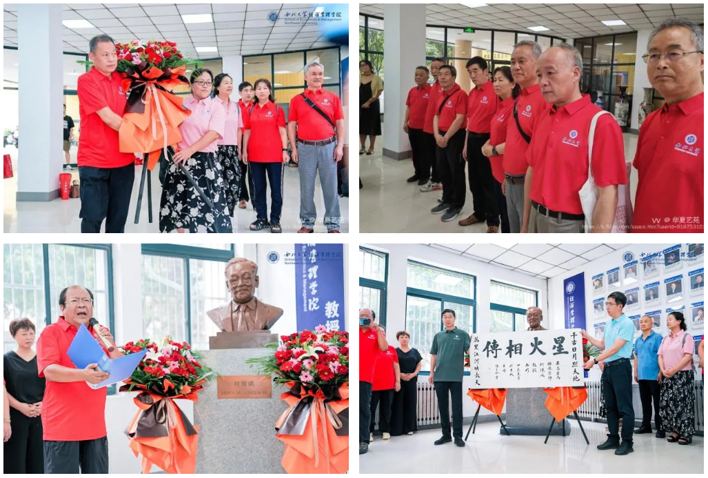 座谈会前,还举办了80级校友向何先生塑像献花和纪念仪式。郭勇校友深情诵读了他创作的《那盏灯——献给敬爱何炼成老师和我们的经管学院》,石高宏校友捐赠了楹联书法作品。