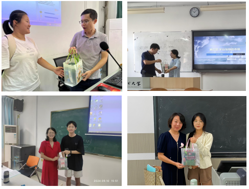 师泽如光,虽微致远。学院学生代表向老师们送上了真挚的祝福。一支支鲜花,代表着学生们对老师的敬爱之情;贴心的礼物,承载着学生们对老师的感恩之意;贺卡上的每一个字、每一句话,都表达着学生们对老师深深的崇敬和爱戴。