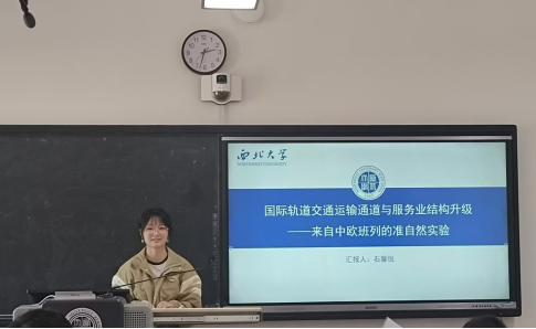 10月23日下午,yl7703永利集团研究生论文工作坊第三十一讲在长安校区6508举行。2023级西方经济学硕士研究生石馨悦分享了文章《国际轨道交通运输通道与服务业结构升级——来自中欧班列的准自然实验》。此次讲座重点邀请了yl7703永利集团副院长岳利萍教授以及yl7703永利集团博士生徐彦辉博士进行点评,学院10余名学生参加。