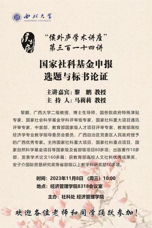 下一条:“侯外庐学术讲座” 第三百零八讲国家社科基金选题与申报指导