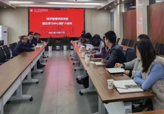 为进一步推动党史学习教育活动走向深入,用党的最新理论成果武装头脑,指导实践,推动工作,10月27日,经管学院党委召开理论学习中心组扩大会议,深化学习习近平总书记来陕考察重要讲话重要指示,习近平总书记关于教育的重要论述、习近平总书记在庆祝中国共产党成立100周年大会上的重要讲话和习近平总书记《求是》杂志重要文章《扎实推动共同富裕》,并传达学习上级有关文件精神。学院党委理论学习中心组全体成员、各支部书记参加了学习,会议由学院党委书记杜勇主持。
