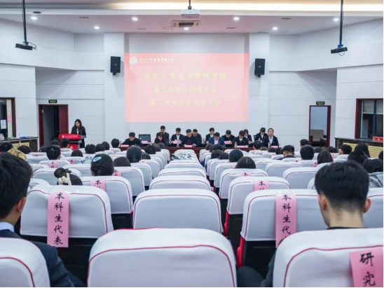院学生会主席团成员张益慧、研究生会主席团成员曹露露分别作了题为《旗帜领航青春闪耀 凝心聚力,打造一流学生分会》和《经世济民 赓续前行 以新担当、新作为走好新的赶考之路》的工作报告。她们对过去一年院学生会、研究生会所负责的的工作进行回顾与总结。同时她们也谈到,学生会、研究生会组织应该紧跟改革开放的时代潮流,加强理论学习与思想引领,给予同学们正向引导。推动改革攻坚,打造阳光学生会,落实服务宗旨,提升服务能力。希望同学们立志做有理想、有担当、能吃苦、肯奋斗的新时代好青年让青春在全面建设社会主义现代化国家的火热实践中绽放绚丽之花。
