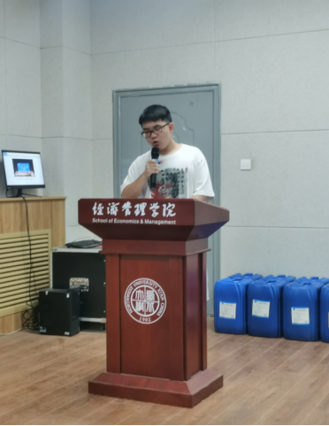 指导老师发言结束后,由现任会长詹磊对上学期工作进行总结,并对本学期将要开展的活动进行部署安排。