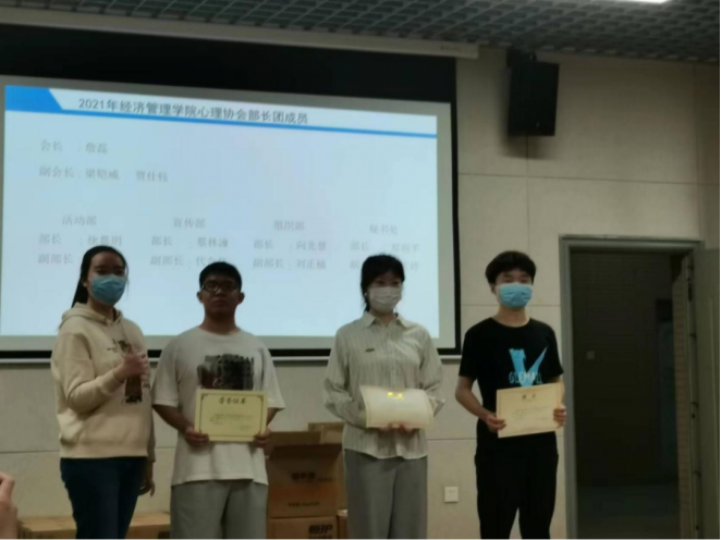 首先,心理协会指导教师戴昶对目前心理协会工作状况做出评价,对历届会长带领社团成员做出的成绩表示肯定。同时对未来工作提出指导性建议,提出社团管理人员应提高工作积极性,增强社团凝聚力。之后,戴昶为心理协会各部门管理人员颁发聘任证书,完成了新一届的交接工作。