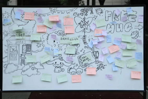 与此同时,情绪分享在互动展板处也火热进行,贴纸上有没有你的小心事呢?