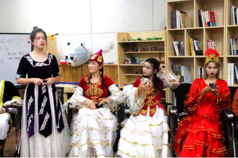 身穿红色长裙,佩戴民族发饰的维吾尔族、哈萨克族同学们为我们带来了一场视听盛宴。热情洋溢的舞蹈和深情款款的歌声无不令人动容。