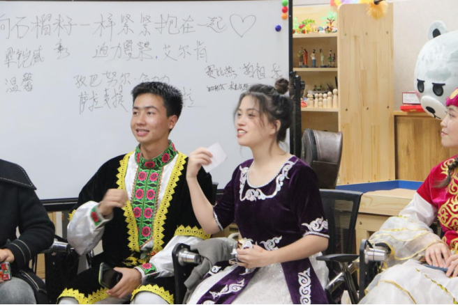 第三个游戏是绕口令挑战,挑战失败的同学要挑选一张写着日常用语的小纸条,并用自己的民族语言或方言说出这句话。游戏之余,同学们也学习了几句实用有趣的民族语言,大大提高了活动的体验感与参与感。