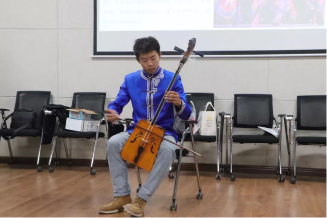 少数民族同学们能歌善舞。蒙古族的同学为我们带来了马头琴表演《嘎达梅林》,表达了对蒙古族传统英雄的崇敬。琴声悠扬,仿佛使人置身草原。