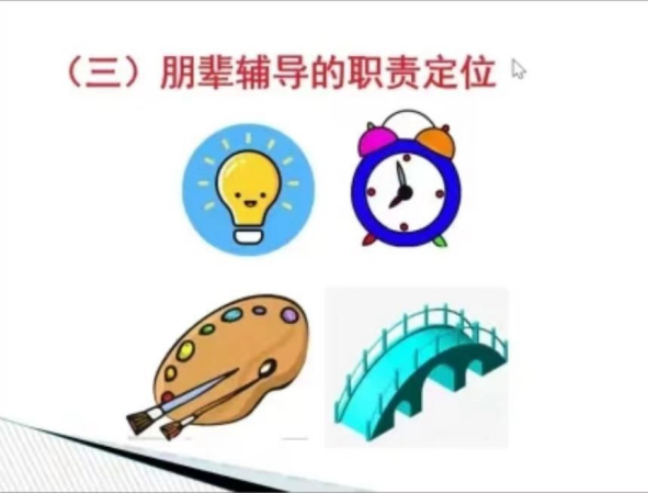 我认识到心理委员更多是作为朋辈协助开导同学,我们有着与同学距离相近的优势,能在第一时间发现问题,,并且同龄人之间的亲切感让我们能获得更多听同学倾诉的机会,我们日常也能有更多时间陪伴同学,给予其心理上的支持。