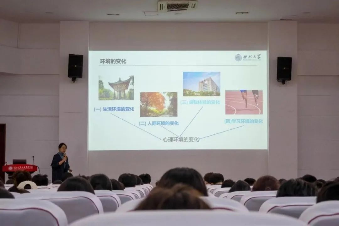 李岚溪以互动的方式展开讲座,询问大家对大学生活的看法,引发同学们对大学的生活环境、人际环境、自我体验、学习环境等四个方面变化的思考,并鼓励大家要保持自己的节奏,从分离到成长、依赖到自主,更好地适应大学生活;从同伴压力、学习和社团间的冲突、人际关系适应三个角度为大家分析了大学阶段会遇到的新问题,并绘制了包含人际关系、身心健康、个人情感、职业规划、专业发展、社会实践等六个方面的“大学拼图”,为大家透彻了解大学生活提供了参考;带领大家学习了心理适应的概念,指出心理适应的不同阶段,并分享了有效适应的方式和途径;介绍了心理健康教育中心及预约咨询方式,希望同学们能够找到自己的节奏,怀揣一颗积极阳光的心,成为自己的主人,拥抱崭新的大学生活。