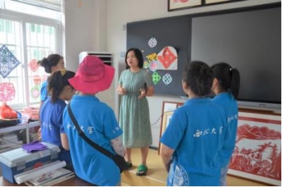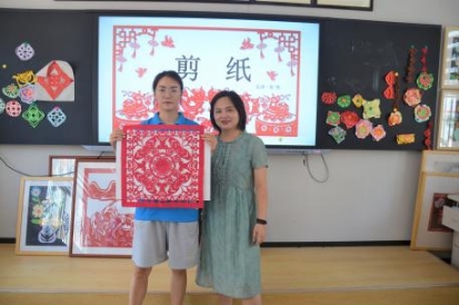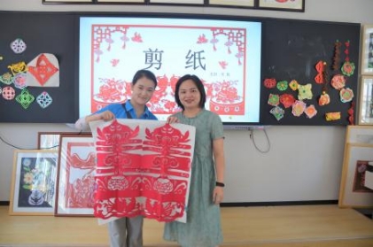 7月28日上午,实践团队成员来到紫阳县第二小学与紫阳县第四代剪纸非遗传承人朱老师进行深入交流与实践体验。朱老师说到美育非遗要根据学生认知特点确定难度,从易到难,开发儿童的对美的认知。作为第四代剪纸非遗传承人,朱老师将传承非遗为己任,计划录制剪纸课程,希望非遗不止停留在紫阳,更能传播出去,让更多的儿童能接触到剪纸。之后,小组成员也积极参与到剪纸的实践练习中,在老师的多次示范下,终于得到了实践成果,亲身体会到了指尖艺术,看着自制的剪纸作品,调研团成员们纷纷表示不虚此行。