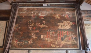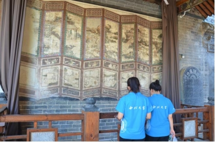 28日下午,团队成员前往距离紫阳县城西南10公里的瓦房店——北五省会馆参观壁画。通过参观、采访得知,北五省会馆中的五省指山西、陕西、河北、河南、山东,该馆最早建于清乾隆末年,现为第七批国家重点文物保护单位。会馆中的壁画绘于清道光至同治年间,是陕西省面积最大、保存最完好的壁画。墙壁上所绘内容包括“桃园三结义”、“千里走单骑”、“三英战吕布”等脍炙人口的情节。同时,壁画中的双龙戏珠与天官赐福图也包含了中国人对美好生活的祝愿。在紫阳县的北五省会馆旧址,我们感受到的是更为宏大深邃,赋予智慧的传统商帮文化。