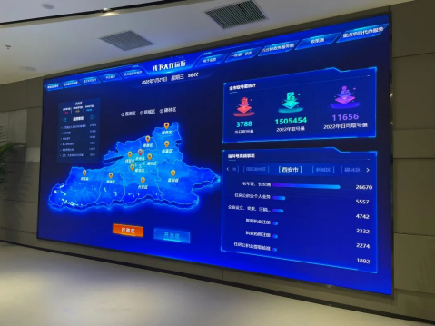 西安市政务服务中心(东厅)是加强政务服务、提高行政效能、优化营商环境,为企业群众提供优质便捷高效服务的重要平台。大厅中的电子显示屏实时记录着各区域政务服务办理情况、好/差评等数据。