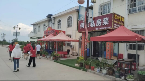 接着,村书记带领队伍实地考察当地的农家乐,了解到近几年由于疫情带来的经济下滑,村中的农家乐从2000年的40多户减少到现在的20多户,而且目前大多农家乐处于非营业状态。团队着重考察了经营状况最好的一家店,店面装修到位,客源较广且固定,菜品精美口感好,为其他农家乐提供了借鉴和参考。综合考察发现该村存在的问题是经营形式和内容较为单一和固定,游客较少,资金不足。村书记表示下一步他们将针对这些问题进行一些调整,丰富菜品种类,对农家乐进行特色化改造,打造真正的乡村振兴示范村。