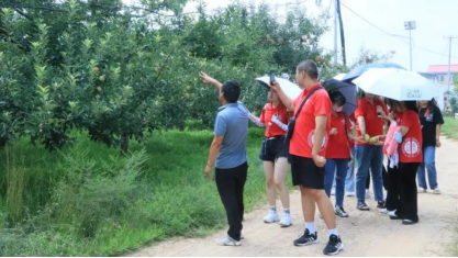 接着,村支部书记带领团队前往芦白村的果园进行实地参观学习。由于苹果树的老龄化,部分果地挖掉了之前的果树,种上了新苗,并且增添了密植矮化的新品种果树苗。