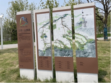 与西安国际会展中心相对的是三河一山绿道工程,沿途美丽的景色吸引着队员们的目光。为响应国家新发展理念,西安三河一山绿道以浐灞河、渭河、沣河已建成的堤顶路和S107环山旅游路为基础,规划建设的集骑行、步行、观光、休闲等功能为一体的生态慢行系统。沿着绿道漫步可以看到众多自然和人文景观,其景色之优美,风景之秀丽,为观赏者提供了一个望得见山、看得见水的绿色生态长廊。如今三河一山工程已成为西安对外开放、吸引投资的一张绿色生态名片。