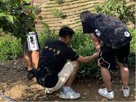 当天,实践团队首先来到商南试马镇沁园春公司的万亩白茶基地,该公司选育优质白茶品种,大面积承租当地农户土地,以“一道田一道沟一道洼”的整体连片开发方式克服商南土地零散狭小的不足,积聚产生规模效益,成功打造了陕西省最大的白茶示范基地;同时又雇佣当地农户种植采摘,使农户获得了地租和打工的双重收益,使农民收入得到显著增长,成为当地产业扶贫的一张靓丽名片。