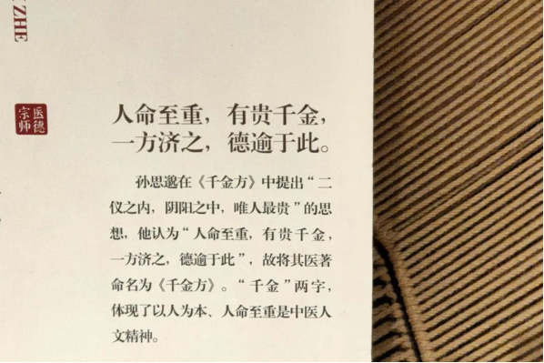 孙思邈将自己的医方无私分享,刻在石碑上供民众使用,提倡对待病人要像对待亲人,对富人穷人要一视同仁;认为“人命至重,有贵千金,一方济之,德逾于此”,其著作《千金方》因此得名。