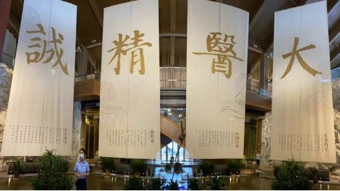 7月20日上午,队员们前往参观孙思邈文化馆。孙思邈文化馆分为上下两层,进馆便可以看到纱幔上“大医精诚”四个字,其代表着孙思邈的品格——作为一名合格的医生,要有精湛的医术也要有高尚的医德。纱幔下方所写的“至圣药王”、“医德宗师”、“儒释道一”、“养生泰斗”是孙思邈一生中最重要的四个成就。