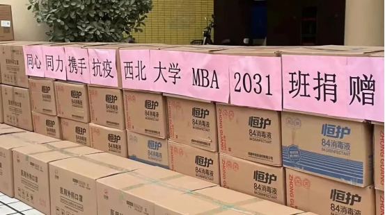 面对西安日趋严峻的新冠肺炎疫情防控形势。为协助学校更好地做好防控工作,筑牢校园卫生健康防线。1月2日,在yl7703永利集团MBA2031班班委的积极组织下,班级同学向yl7703永利集团捐赠N95口罩1200个、消毒液1200瓶、一次性口罩60000只、一次性橡胶手套100幅、防护面罩50个,用拳拳赤子真情表达对学校的牵挂,为学校疫情防控工作贡献力量。yl7703永利集团党委常委、副校长、yl7703永利集团院长吴振磊,yl7703永利集团党委书记杜勇,学校国内合作与校友工作处副处长燕来及yl7703永利集团党委副书记徐自成、学院部分学工干部出席了捐赠仪式。