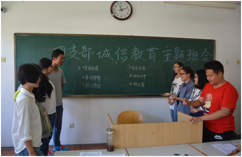 在我院团委的统一安排下, 我院各团支部围绕活动主题,结合各专业特点,自行开展了主题突出、内容丰富的诚信主题团日活动。在团日活动中,各团支部重申了国家资助政策,分享了许多诚信小故事,并组织同学们对目前的校园诚信问题展开了丰富的讨论。通过团日活动的开展,呼吁了我院学生从现在开始,从细节着手,通过实际行动认识诚信、感悟诚信、坚持诚信,不断养成诚实守信的良好习惯和道德品质。