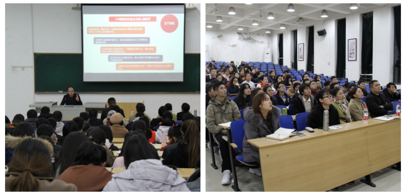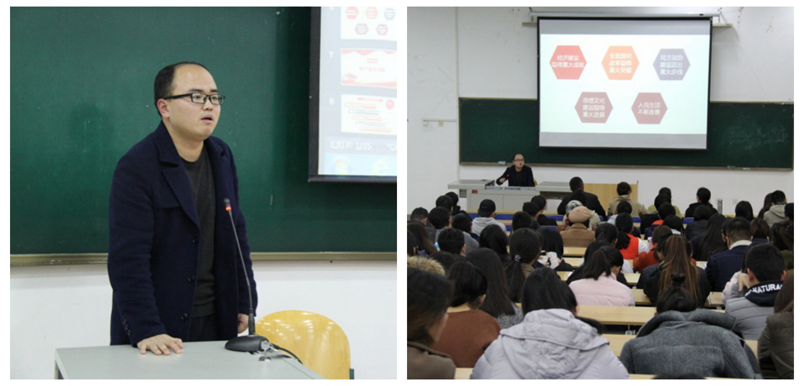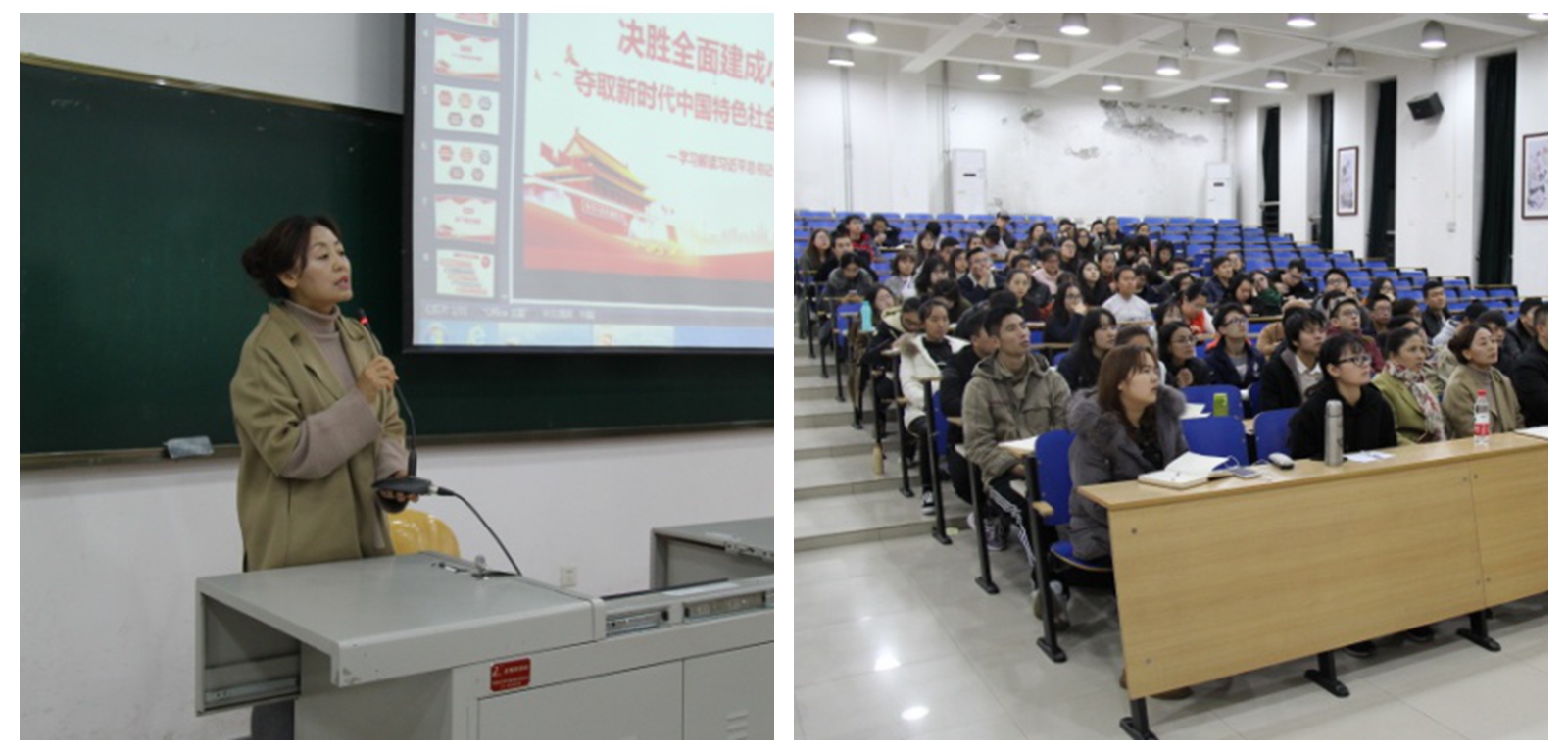 张立带领全体与会师生主要从大会主题、过去五年党和国家所取得的历史性成就、二个重大判断、一个历史使命和“四个伟大”、习近平新时代中国特色社会主义思想、两个重要时期和两个发展阶段、九个方面的理论分析和政策指导等方面原原本本的回顾了习近平总书记代表十八届中央委员会向党的十九大作的工作报告。重点就我国社会主要矛盾的转变、习近平新时代中国特色社会主义思想、宣传党的十九大必须聚焦到习近平总书记是党的领袖等内容分享了自己的学习体会,并针对党的十九大报告中关于国家安全、少数民族政策、宗教工作等内容做了强调。