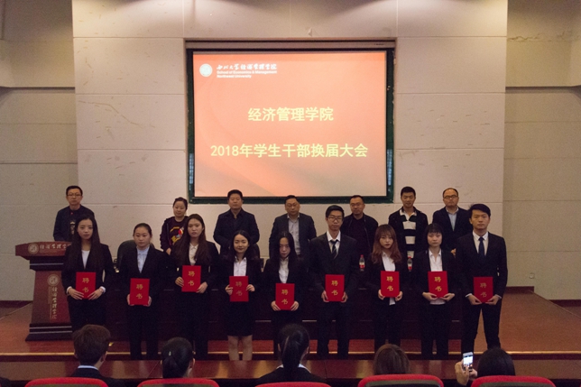 会上,学院领导老师为新一届学生干部颁发了聘书。