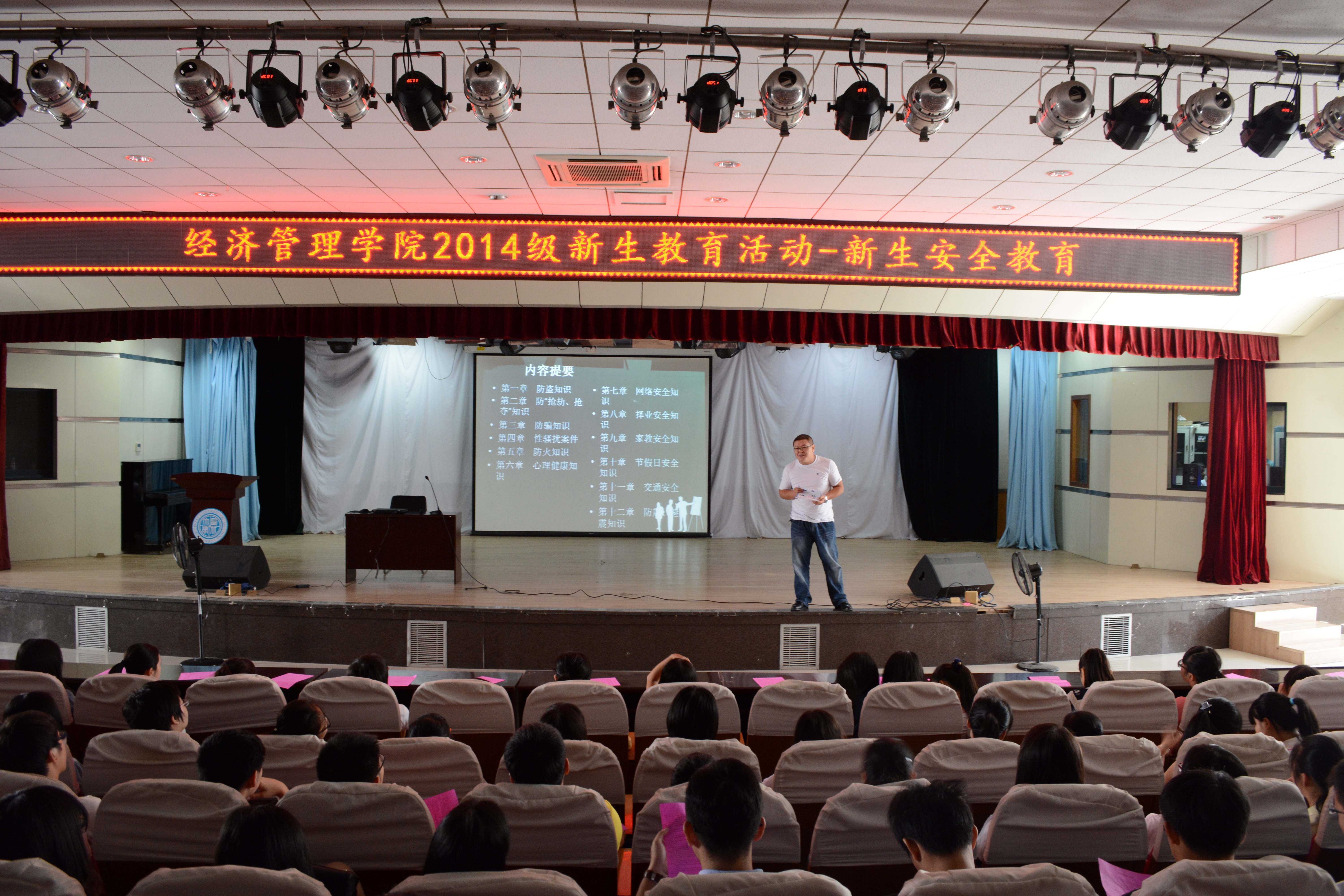3日上午9点,校公安处治安科王毅老师应邀在多功能报告厅为2014级全体新生做安全知识教育专题报告。王老师通过案例分析就大学生如何防盗、防抢、防骗、防火、防传销、防骚扰以及交通安全等问题,向新生做了详细讲解。讲座增强了学生安全防范意识和自我保护能力,取得了效果。