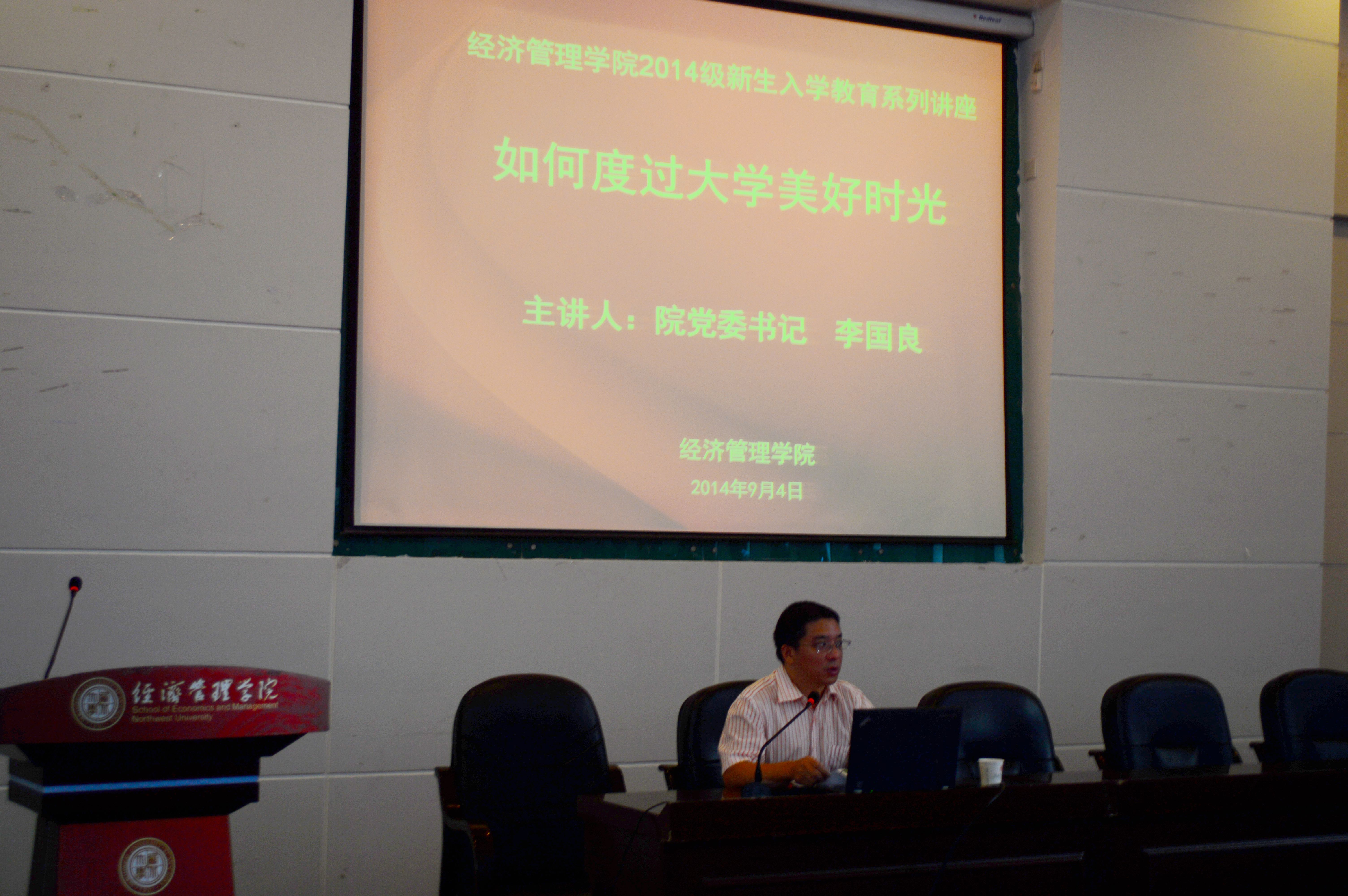 4日上午,院党委书记李国良在金海恒业报告厅为我院本科新生作了题为“如何度过大学美好时光”的讲座。李书记希望同学们能够利用好学院提供的各种资源,珍惜大学时光,刻苦学习、努力成才。他结合实际就新生如何合理规划大学学习生活、提高自身竞争力提出了诸多有益的建议,在座新生获益匪浅,讲座收到了良好效果。随后,院党委副书记李一凡为新生作了校规校纪教育,李书记向新生讲解了考试管理、外出管理、请销假、奖学金评定和违纪处理等多项制度,教育新生遵守学校规章制度,规范自身的行为举止,争做遵纪守法的合格公民和优秀大学生。