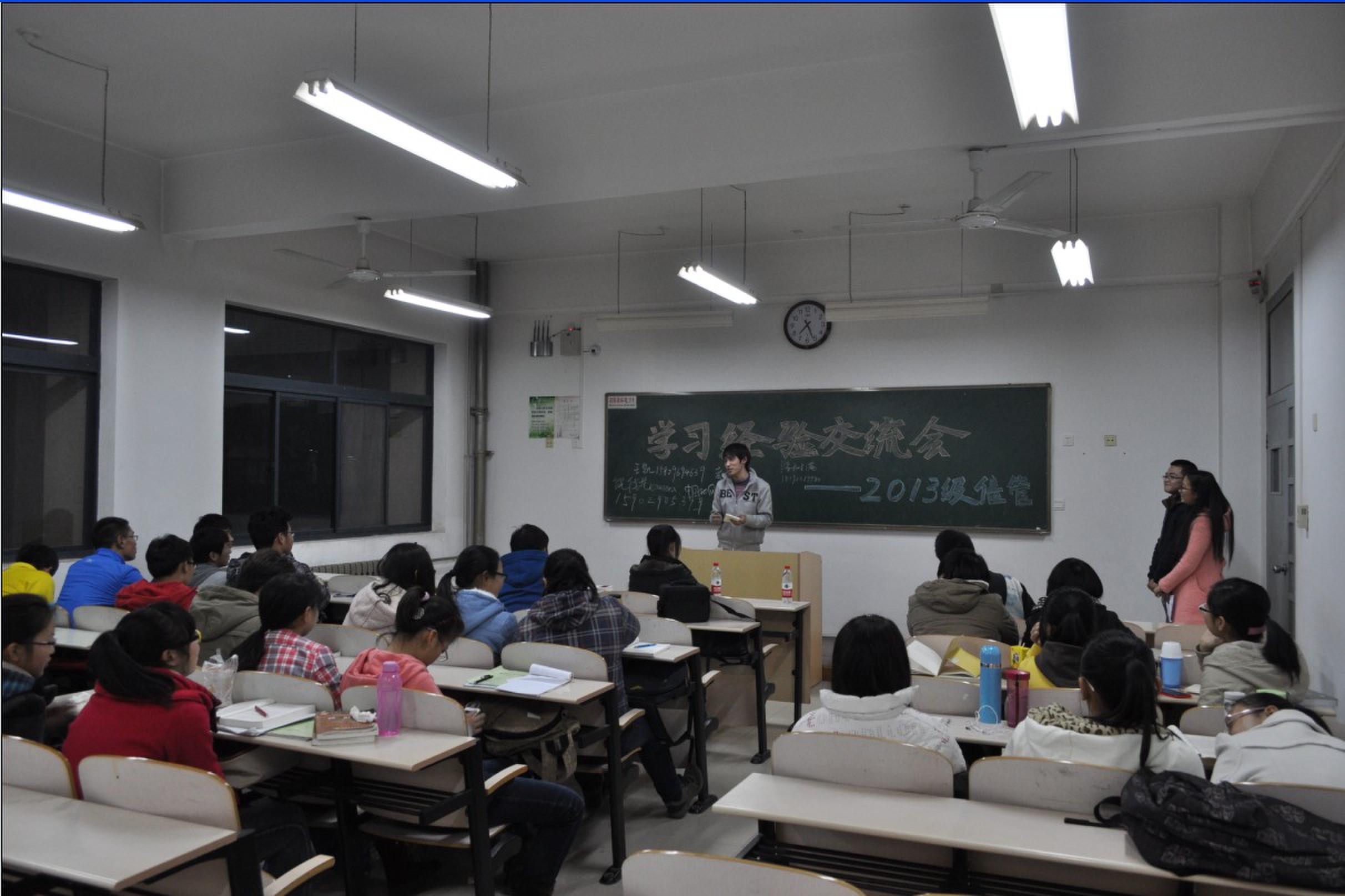 为了帮助2013级新生尽快适应大学生活,掌握正确学习方法,我院信息管理与信息系统专业于11月21日在3312举办了新老生学习经验交流会,2013级信息管理与信息系统专业全体同学及四名高年级本科生代表参加了交流。