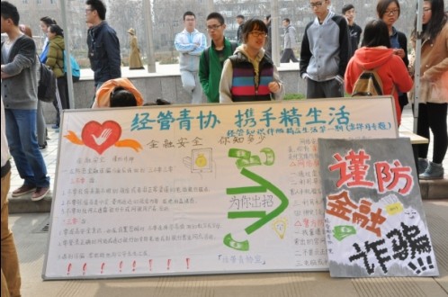 为使活动取得实效,院青协的志愿者们前期做了充分的准备,同学们依托所学专业知识,紧密结合大学生生活特点,搜集整理了内容详实的资料,制成了宣传单和宣传展板,内容涵盖电子商务知识、金融理财知识、常见金融诈骗手段等,并对预防金融诈骗的方法做了总结。同学们还设计制作了金融知识调查问卷,为后续活动做好调研工作。
