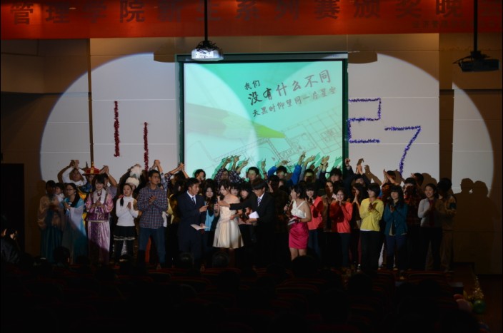 2012年11月27日晚,我院在金海恒业报告厅举行了新生系列赛颁奖晚会。院党委副书记李一凡老师,辅导员马金保、史暐、李若昕、史歌老师以及各年级学生代表共计300余人参加了晚会。