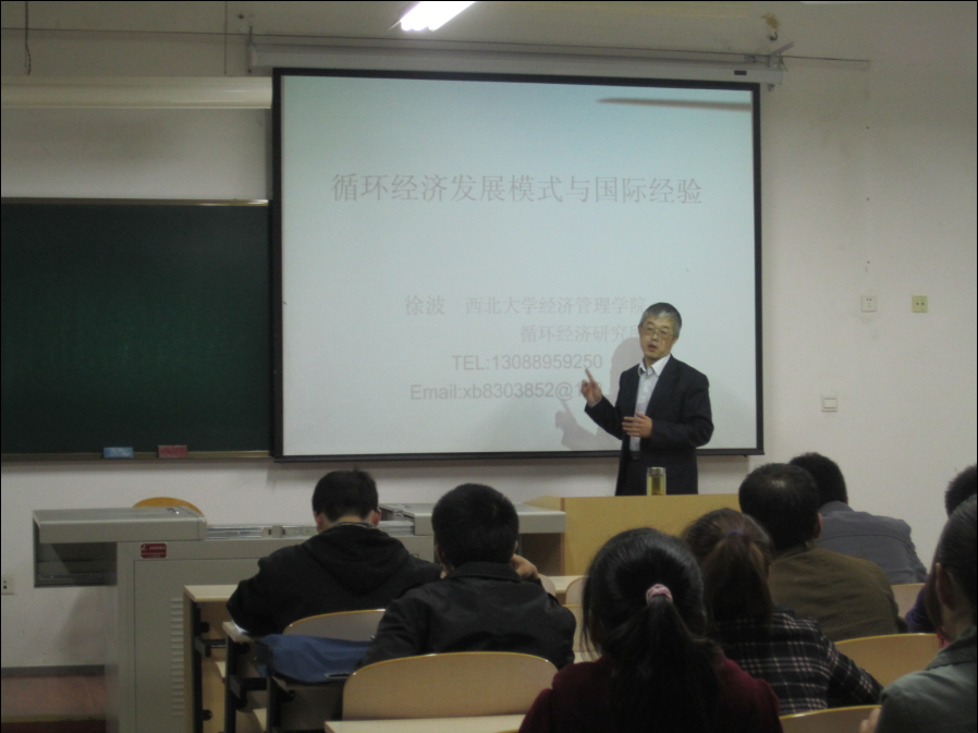 2012年10月26日晚18:30,我院世界经济与贸易系徐波教授应邀在2306教室为研究生作了题为《循环经济发展模式与国际经验》的报告,100多名研究生参加了报告会。