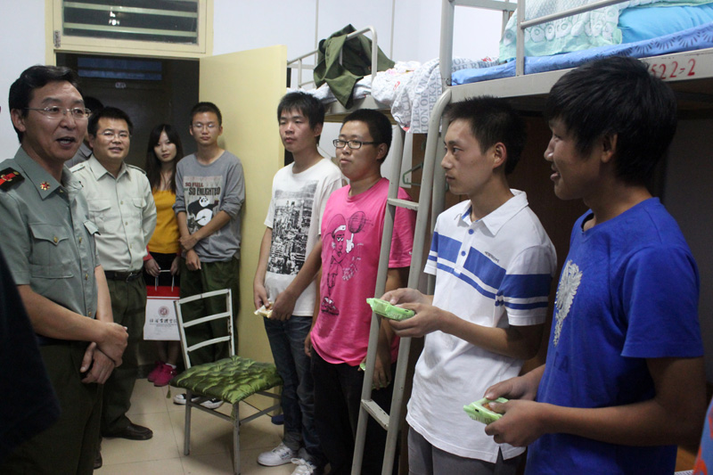 院长任保平教授、王宝书记对新生军训工作高度重视,把军训作为培养和锻炼学生集体荣誉感、凝聚力向心力、组织纪律性和吃苦耐劳精神的一个重要途径,多次指示辅导员要下连队,进宿舍,为军训学生做好思想动员和后勤保障工作。军训期间正值我国传统节日——中秋佳节,学院领导特意拨出专款,为参训学生每人购买了月饼,由学院党委副书记樊涛带领辅导员送到了新生宿舍,使新生感受到了经管学院大家庭的温暖。